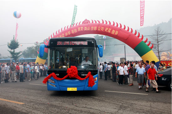 围观市民欢呼黄海客车投入101公交线路