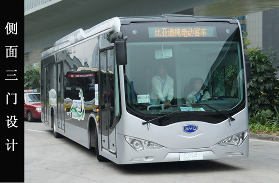比亚迪K9纯电动客车车身长达12米,远超普通公交,为方便乘客上下,特采用了罕见的三门设计,增加上下通道、减缓上下门的拥堵,缩短了乘客上下车的时间,有效地提高了乘客上下车的效率。