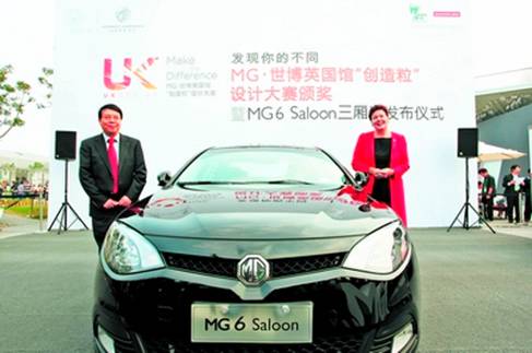 “新基准轿车”MG6家族全新UK Design车型MG6 Saloon三厢版在世博会英国馆首次亮相,这也是上海世博园首度发布汽车新品,吸引了业内外专业人士,以及消费者的关注。