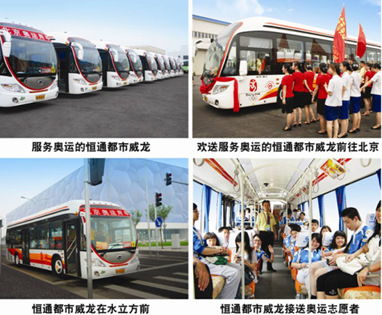 2008年,还有一个值得所有中国人自豪的大事——北京奥运会盛大举行。10辆外观时尚靓丽,内部豪华舒适的恒通都市•威龙一级踏步纯天然气客车代表重庆市成为北京奥运会指定用车成员,承载着恒通人的荣誉与梦想,从恒通工业园出发,一路向北,历经四川、陕西、河南、河北最后到达首都北京,服务奥运。服务期间,都市•威龙担负起接送奥运呼叫中心的工作人员和志愿者的重任,为包括高校学生、在京留学生、在职客服人员、行业内高管人员、离退休外事工作者等来自各行各业人士提供了优质的服务,其宽敞舒适的空间,时尚大气的外形获得了组委会及乘坐人员的一致好评,出色的完成了服务奥运任务。