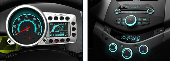 外形方面,全新SPARK应用了雪佛兰最新家族特征,"Body in, Wheel out"设计语言凸显动感扎实的外观造型。而内饰方面,V型中控台设计、单炮筒车速表、几何形状的LCD数字转速蓝调背光表盒都是新车的特点。
