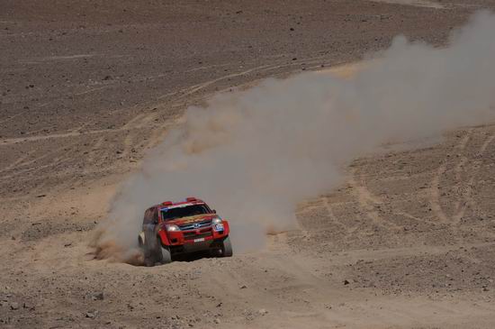 11日的第9赛段是环科皮亚波的沙漠路段。这是对于第一次参加达喀尔的新人们的一个挑战,对于周勇来说,却是他最擅长的部分。