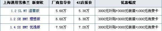 编辑从沪上上海通用雪佛兰4S店了解到,雪佛兰新赛欧三厢全系累计优惠7000元,其中包含3000元节能补贴、3000元装潢礼包以及1000元的店内消费卡。虽已年至岁末,新赛欧全系车型亦十分充足。具体优惠明细如下: