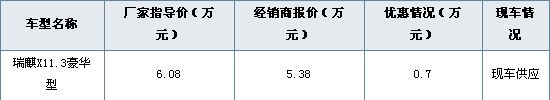 月底前购瑞麒X1现金优惠5000元 仅限10台