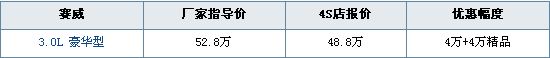 编辑从广州粤凯4S店了解到,搭载通用明星发动机的赛威3.0L SIDI豪华型巨降8万,其中4万元现金优惠,4万元精品优惠。目前4S店有现车可提。