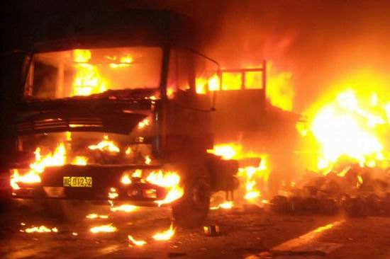 “我们赶到现场时,大火已经把整个车身都引燃。”崇遵二大队交警介绍说,当时火焰已蹿至十余米高,车体不断发生爆炸,一个个火球飞到附近山坡上,引燃了灌木,大火向山坡下方约500米处有几百户人家的三元村扩散。