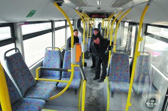 32路公交车的关师傅与几位同事走上车辆体验新鲜。关师傅告诉记者:“开了10多年的大公交,这么漂亮的车还是第一次看到。这车大、气派、设施全、坐着舒服,驾驶员头上、身边新增了麦克风、控制台等多个设备,减轻了驾驶员的很多无用操作。”