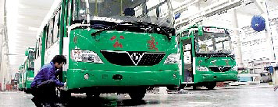 “公司原来的产品链不全,主要产5.5米~9米的中巴,现在可以生产从5.5米~13.7米的一系列客车,产品型谱很齐全。经营汽车企业也像开饭店,菜谱得齐全。”王晓瑞说,目前的产品系统涵盖大中轻型三个段位、高中普档全系列,还有公交车、旅游车、专用车、新能源混合动力车等。2007年,随着5000台大客车基地的建成投产,生产能力也大幅度提升。“去年,公司还成立了旅游客车销售公司,专门销售大客车。”