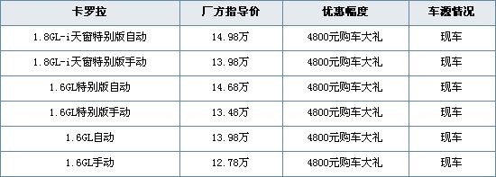 卡罗拉现金优惠12000元 再送4000元精品