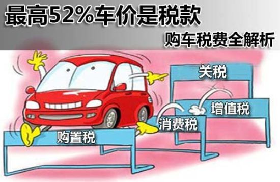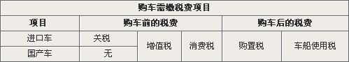 从上表可以看出,应缴税费的税率分别为关税25%、增值税17%、购置税10%,而消费税由于与车型排量挂钩,所以税率为1%-40%不等。此外,车船使用税根据车型不同,价格为300-600元。除此之外,关税(国产车除外)、增值税和消费税是按照裸车价进行计算,而购置税是按照包含关税(国产车除外)和消费税的厂家指导价进行计算。