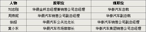 刘志刚是华晨的 “三朝元老”级人物,在华晨工作长达二十余年,此前在华晨有两项重要职务,分别是华晨汽车销售公司总经理和华晨金杯汽车有限公司总经理,同时主管销售和生产。可是就是这样一位华晨的重臣,在华晨一系列改革中成为被“革命”的对象,最终选择了离开华晨,心中自然有着深深的不舍但也无可奈何,不过随着刘志刚加盟华泰,组建新团队的重任也就落在了他身上。