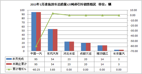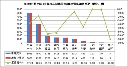 2011年1月25吨<准拖挂车总质量≤40吨牵引车销售情况