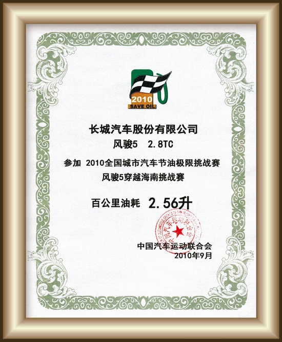 在2010年,风骏皮卡在全国范围内掀起了“挑战1升油”的活动,让风骏皮卡用户亲身参与进行挑战,在众多用户及媒体的共同见证下,看1升油在风骏皮卡上到底能跑多远。最终,来自西安的魏先生以32.5公里的成绩折桂,让大家见识了1升油在风骏皮卡上的效能。之后,风骏皮卡再接再厉,在中汽联和CCTV联合举办的“全国城市汽车节油极限挑战赛(海南站)”的比赛中,以百公里2.56升油耗的优异成绩,创造了皮卡最低油耗的纪录,树立了皮卡业界节油新标杆。