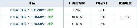 锋芒毕露的车身外形、宽裕舒畅的内饰空间、高效完善的动力底盘、周到齐全的贴心配置、顶尖水准的安全环保等,都足以使锋范具有足够的自信进入竞争激烈的中级车市场,再加上1.5L车型综合工况法油耗仅为6.5L/100km(1.5MT)和6.8L/100km(1.5AT)的出色燃油箱表性表现,再加上3000元的国家节能补贴,和厂家及店内提供的购车优惠政策,锋范必将能够给那些享受挑战快乐的人们带来期待拥有的自豪。