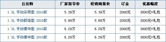 日前,编辑从宁波海马某4S店处了解到,丘比特部分现车,1.3L有红色、蓝色车型,其余颜色车型需要预订,订金2000元,提车大概需等一个月的时间。目前购买丘比特享受国家补贴3000元,赠送礼包。具体情况如下表:
