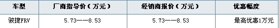 价格波动分析:骏捷FRV的优惠幅度同样没有明显的变化,基本保持在3千元左右,此次优惠最高优惠一万元,增加了这款车的性价比。感兴趣的朋友可以店看车。