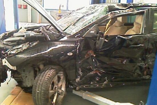 失控的车子以70km/h的速度径直撞上了路边的水泥墙护栏上,撞击后车子又180度逆向行驶撞马路的另一边护栏,一路撞坏了16个水泥护栏后,车子发生侧翻幢到了桥栏上才停止了移动。