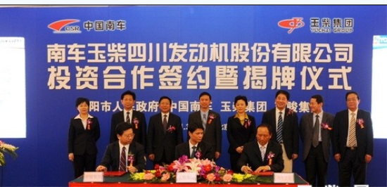 中国南车是我国最大的轨道交通装备研制企业,在世界轨道交通装备制造行业具有突出的影响力,2010年,位列全球轨道交通装备行业第二名。广西玉柴是我国最大的发动机研制企业,具有年产销各型柴油发动机60万多台、中小型工程机械1万多台的实力,被誉为“中国绿色动力之都”。2010年4月和10月,中国南车与广西玉柴先后签署了《战略合作框架协议》、《合资合作意向书》,两家集团公司的合作不仅有利于双方优势互补,加快两家企业共同发展,还将极大的拉动四川企业核心技术上档升级,促进四川地方经济发展。