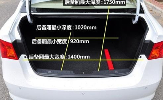老款凯越时代前排的头部空间一直令人遗憾,新款车型由于车身高度不变,所以也未能有很大进步。新凯越空间的长处在于腿部空间,差不多可以有一个手掌的距离。在储物空间方面,新凯越中规中矩,前后门的储物箱以及手套箱等都比较方便。另外,后排可4/6分割放倒,比较实用;405L的后备箱容积家用足够。