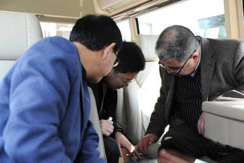 客户体验环节现场嘉宾仔细研究车内科技含量高的座椅调节系统