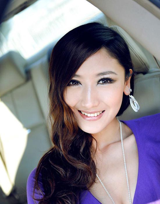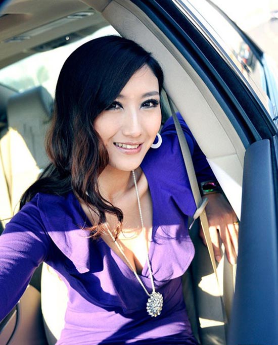 美式豪车中的紫色魅影 美艳车模完美身段