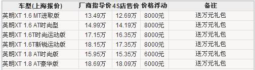 别克英朗是别克品牌旗下继新君威、新君越以及昂科雷之后,第四款基于通用最新全球平台生产的车型,别克英朗源自欧宝新雅特,出自通用全球Delta Ⅱ平台。在国内,别克英朗的主要竞争对手将是刚上市不久的一汽大众高尔夫6车型。“英朗”不仅完美诠释了这款五门轿跑车与生俱来的英姿焕发的气质及飒爽硬朗的线条和驾驭感受;同时也辉映出新一代奋斗青年的“才能和智慧”以及“敢想敢为、利落干脆的处事作风”。“英朗”的命名为别克品牌精神注入了新的时代内涵。编者了解到现在购买英朗XT将有优惠,详情参见下表: