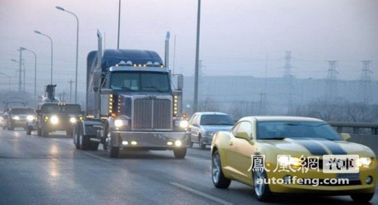 这是一名网友在石家庄槐安路拍摄到了一条变形金刚车队。车队由“大黄蜂”开路,气势不凡。队中有“坦途”拉着ATV不乏帅气,悍马H1拉着直升机(模型或实物未知)霸道十足,擎天柱并非是擎天柱的原型彼得比尔特389而是WESTERNSTAR 西星重卡。