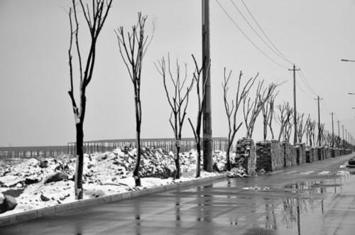 尽管比亚迪已经停工多日,其厂区周围的配套道路建设却并未随之停止,几条宽阔的水泥路围绕在厂区周边,水泥路的一边堆放着施工用的红砖。