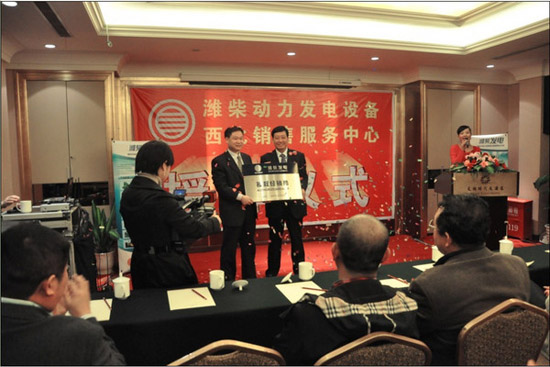 开业当天举办了盛大的揭幕庆典,并正式面向西北用户展开了潍柴陆用发电机组销售和售后服务了。雄狮跳起来,音乐响起来,在欢快的音乐声中,潍柴发电设备公司副总经理陈武生和陕西北方机电耐腐设备有限公司陈兆鸾总经理共同举起潍柴发电机组西北销售服务中心授权牌,同时潍柴发电设备全系列机组隆重登陆西北。