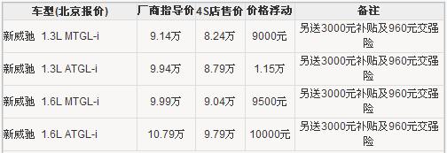 威驰是一汽丰田主要以年轻人为目标消费群,特别设计出的入门级都市精品车型,其“生而简酷”的特性已在年轻人群中引起极大反响。近日,笔者从一汽丰田北京经销商处了解到,新威驰最高优惠1.15万元,购车另送3000元补贴及交强险。详情请见下表: