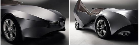 GINA (GINA Light Visionary Model)概念车是来自 BMW 最新的一个研究项目,将柔韧灵活(flexibility)融入汽车设计。初一看就是一辆 BMW 风格的汽车,紧绷的肌肉,雕塑感,Chris Bangle 的”Flame Surfacing”,事实上 GINA 的外表皮是一层布,蒙在可控制活动的框架上,这样不仅可以控制车的各个活动部位,比如车门,前大灯,同时也可以改变整个汽车的外形,就看汽车是什么心情了,:)。这些活动框架靠电子液压来控制,表皮材料是聚亚氨酯涂层莱卡(polyethylene-coated Lycra,Lycra是杜邦莱卡),并在相接处做到无缝,GINA 基于 Z8 底盘,概念成型于加州Designworks USA,后来在慕尼黑由 Anders Warming 带领制作成全尺寸模型,人们可以在 BMW 博物馆看到它。
