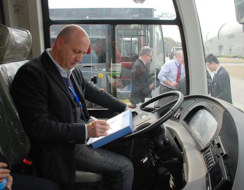 在对车辆进行噪音和刹车制动距离测试中,评委对安凯双电纯电动客车的表现竖起了大拇指,言语“I want to buy it”。