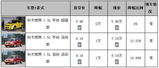 近日,编辑从上海长安铃木4S店了解到,长安铃木雨燕部分车型优惠1万元,再送装饰礼包,详细信息请咨询经销商,具体优惠如下: