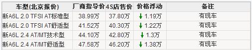 国产奥迪A6L作为过去两年高档C级车销量冠军,究其原因无非是迎合了中国消费者对高效环保、安全舒适、人性化的高档行政轿车的需求趋势。近日,笔者从奥迪北京经销商处获悉,2011款A6L现车供应,购车最高优惠1.38万元。详细价格见下表: