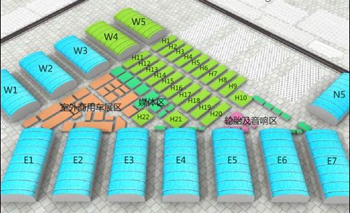 ● 室外场地:商用车(W1-W3号馆外侧、E1-E3号馆外侧)