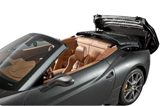 Webasto在其展台上展示一款法拉利California的两件式可折叠硬顶,这是其专有可折叠车顶技术中的一大亮点。可折叠车顶系统有以下特点:利用首次在液压装置中应用的比例阀技术,Webasto制造的可折叠车顶仅需14秒钟就能完成打开和关闭过程。此外,精巧的运动结构还确保给行李箱留出足够的空间。