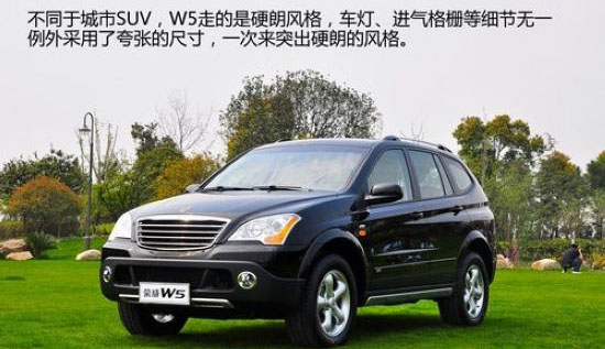 上海汽车集成全球资源,倾注世界级SUV专家经验全新打造的“跨领域专业SUV”荣威W5造型时尚而不乏霸气。车身尺寸拥有同级最优的2740mm超长轴距;193.5mm的离地间隙给人以“高姿态”视野享受;宽敞的车内空间足以容纳各种越野器材。值得一提的是,荣威W5采用的创新HFA高强度越野型车体结构和优秀的越野通过性设计多在路虎和Jeep牧马人等着名SUV车型中应用。另外,其所搭载的P-4WD专业级全模式四驱系统既可帮助驾驶者应对各种极端野外路况,又周全照顾了城市行车的燃油经济性,以2驱模式配合电子系统达到SUV城市行车的最佳节油效果;以四驱模式为每个车轮分配到合适的扭矩,使跋山涉水如履平地,野外行车畅行无忧。带领驾驶者全方位探寻城市、越野两相宜的跨领域生活新高度。