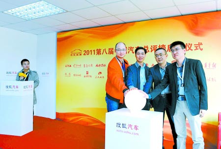 4月19日,全球规模最大、最受厂家关注的上海车展盛大开幕,当天下午,中国最大的汽车媒体联盟——中国主流媒体汽车联盟的21家成员单位,齐聚搜狐汽车展台,共同启动2011第八届中国汽车总评榜的评选活动。