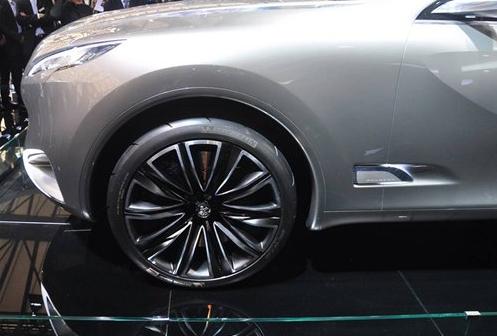 该车采用了大量拉丝铝的材质打造,猫眼式的大灯、LED日间行车灯、后视镜摄像头、回飞棒式的LED尾灯以及22英寸轮毂都出现在这辆概念车上。