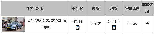 近日,搜狐汽车北京站编辑走访京城东风日产南方三合4S店了解后得知,目前在售的天籁顶配尊领版在购买时有近2.5万元的车价优惠。据悉,现购买此车的客户可在厂商指导价37.18万元基础上享受直降2.3万,在货源方面无现车,消费者需交纳2万元订金,订车周期在4周左右,感兴趣的朋友不妨到店详谈。