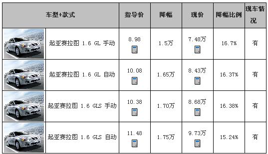 近日,编辑从上海地区某东风悦达起亚4S店处了解到,现在店内赛拉图有少量现车,但暂时购车还无需预订,购车基本无需预订,且现在购车最高有1.75万元的现金优惠,再送礼包,具体优惠幅度根据车款有所不同,详细情况请见下表: