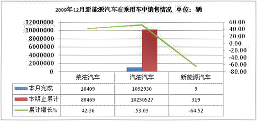 2009年12月新能源汽车在乘用车中产销数据
