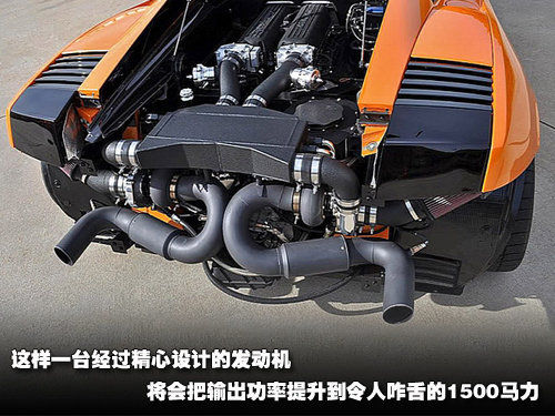 Underground Racing为兰博基尼盖拉多提供了一系列的涡轮增压改装套件。第一阶段的改装套件能够让这台V10发动机输出650马力,而这套双涡轮增压所能够达到的最高功率输出居然是1250马力!如果1250马力的兰博基尼盖拉多仍旧不能满足你对于速度的需求,而且你的银行账户里还有那么一点点零钱供你继续败家,那Underground Racing还能够通过更换一套更加极端的比赛专用涡轮的改装方式为这台V10发动机的输出功率提升至1500马力!不过如此极端的改装方法甚至连改装商Underground Racing自己都不是十分建议,毕竟拥有1500马力的中置发动机四轮驱动的超跑不是随便找个有钱人就可以驾驭的。
