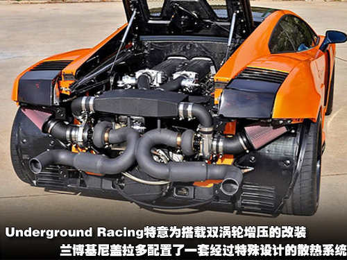 还记得去年年底我们曾经介绍的那个来自美国名叫Underground Racing的改装厂吗?照片中那台改装了双涡轮增压系统的法拉利458让不少人艳羡不已吧?Underground在过完元旦之后又一次带来了他们的拿手好戏,为超跑改装双涡轮增压系统。不过这次的改装对象是兰博基尼盖拉多。