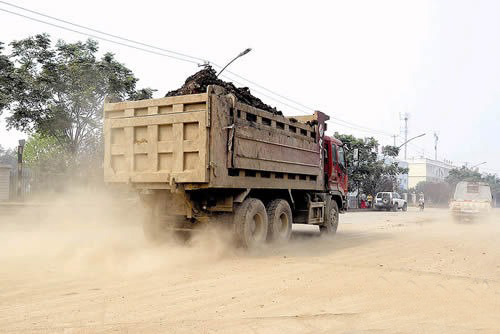 漏撒渣土,在路面上遭反复碾压,尘土飞扬,影响城市空气质量。
