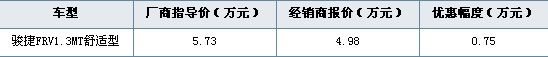 价格波动分析:骏捷FRV的优惠幅度同样没有明显的变化,基本保持在3千元左右,此次优惠惠7500元骏捷FRV售价下探到5万元区间,增加了这款车的性价比。感兴趣的朋友可以店看车。