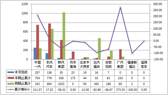 4月份大型客车非完整车辆的产销量分别为535辆和495辆,产量比同期累计增长-7.44 %,销量比同期累计增长-7.18%;