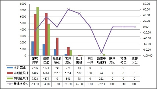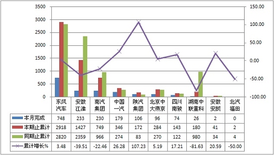4月份轻型客车非完整车辆的产销量分别为5384辆和5258辆,产销量同比累计增长分别为25.84%和28.36%。