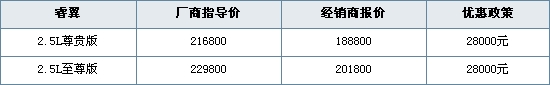 价格波动原因:睿翼一直以来都有万元以上的优惠幅度,2011年购置税政策已经停止,目前2.0排量优惠1万元,2.5排量优惠2.8万元,降幅又回到了去年金九银十时。