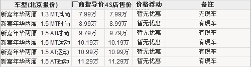 据4S相关人员表示雪佛兰赛欧两厢全系除过1.2升自动理想型无现车,其余两厢款都有现车。销售人员还表示并且购车赠送价值1千元的装饰礼包(含三厢车型),1.4升车型现车数量稳定,两厢款主要是黄色现车居多。三厢版主要是1.4手动档车型充足,自动序列式变速器(EMT)车型的现车数量稀少。